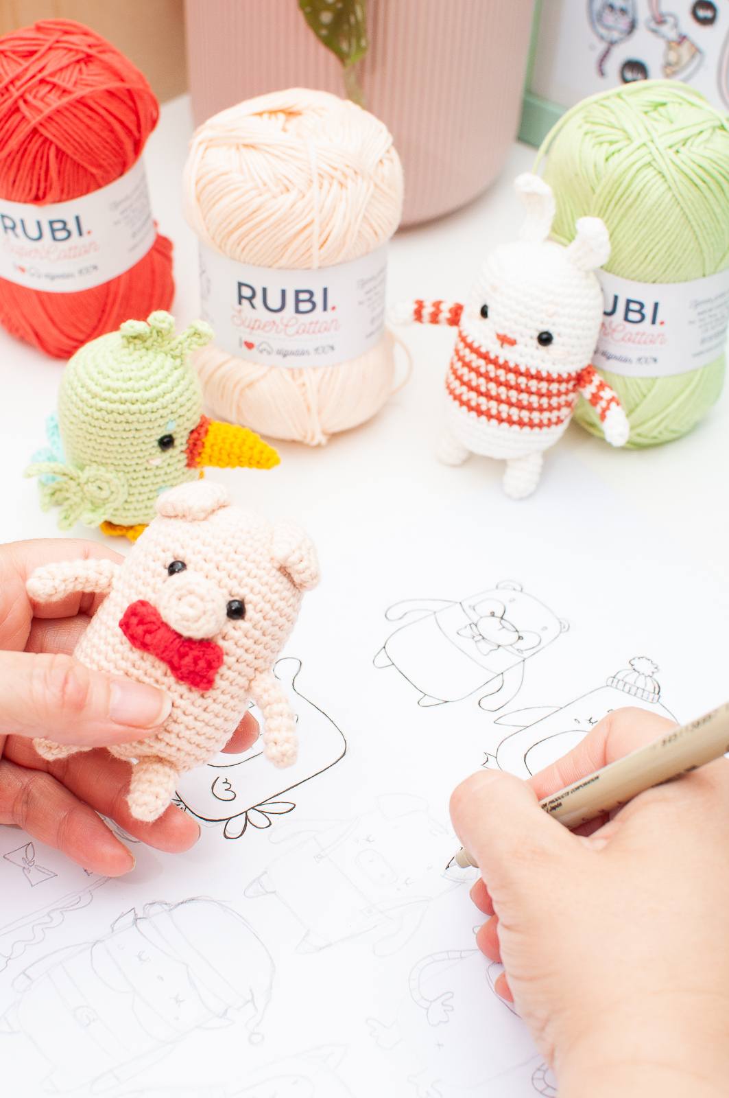 – Bocetar e imaginar un amigurumi a partir de formas básicas.